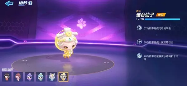 瑶台仙子拥有防闪电的能力的同时还带迅脱和防大魔王,这种技能构成让其应该能成为现在最值得推荐的宠物。 不过如果希望其发挥最强实力货是解锁形态皮肤,对其进行升级是必要的,前19级可用奶瓶,而最后一级则必须使用突破糖果来进行喂食。