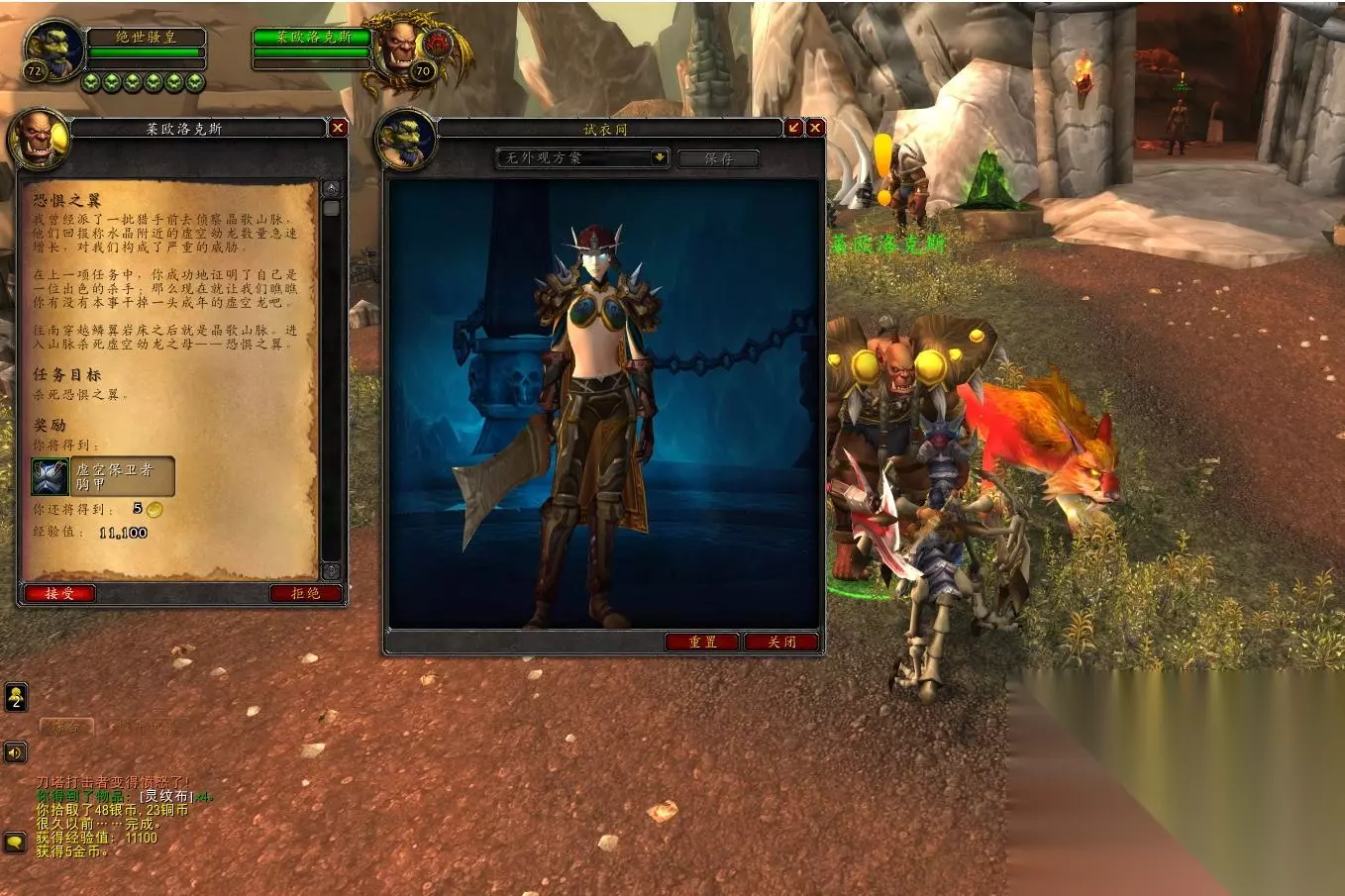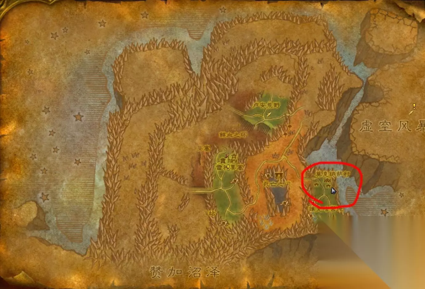 嗨,大家好,最近小气一个不小心沉迷了幻化,然后看到了著名的光荣女兽人系列,深受感动,然后去拍卖行看了一下价格,更加感动了,但是又想要有一套比较清凉的板甲套,怎么办呢。翻翻幻化,我们发现了和前锋套同个模型的虚空保卫者护甲,BL方任务,但是这个怎么难得倒我们,拉起试用板甲号,我们出发~ 首先,到外域的莫克纳萨村,我们直接炉石回奥格,走传送门,出来直接飞鸟点就能到(试玩号外域鸟点全开的)