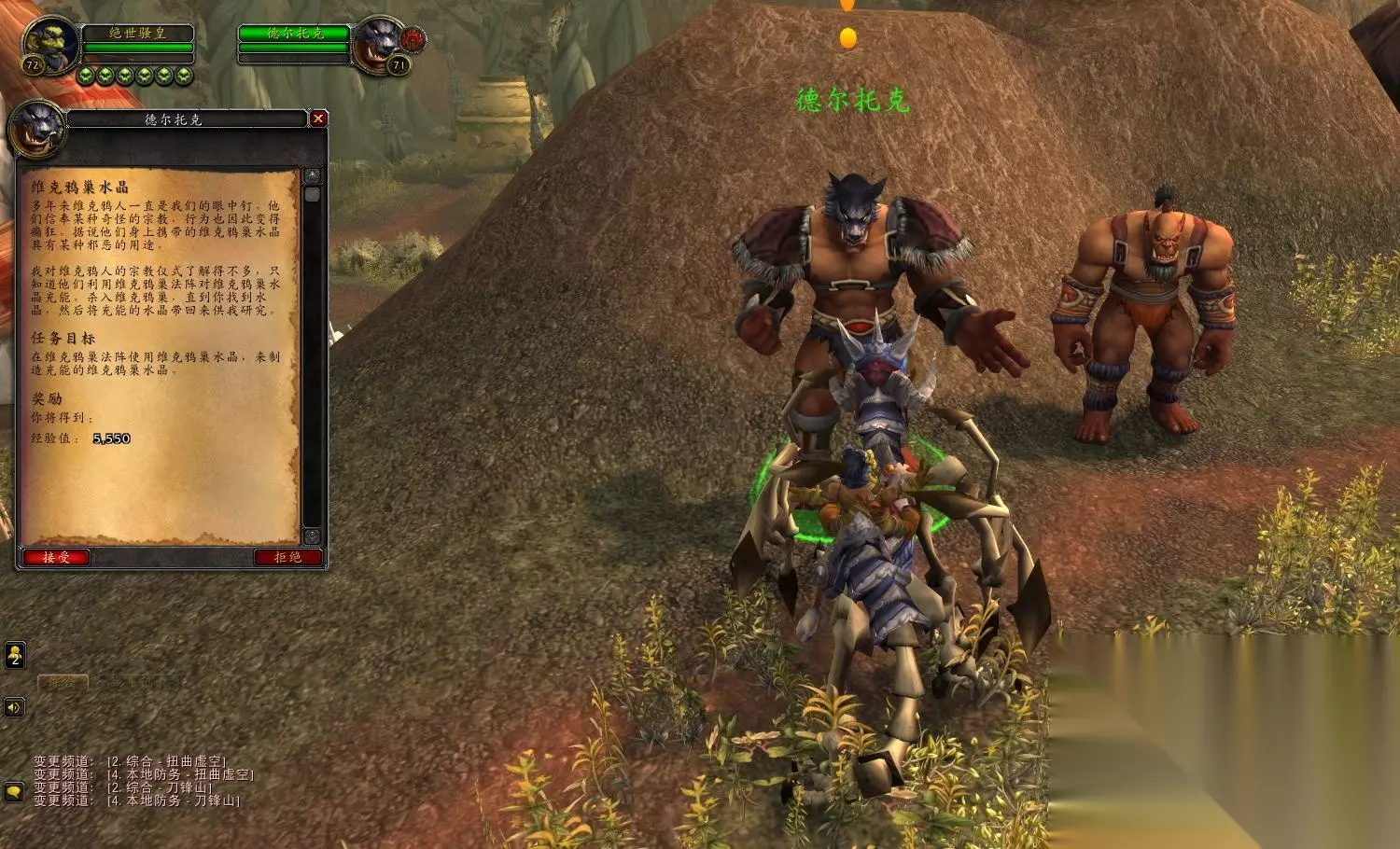 找到这个叫德尔托克的兽人,他会给个维克鸦巢水晶任务,三下五除二解决交掉。这时在他后面的正主任务冒出来了,找到这个叫莱欧洛克斯的兽人,他会给起始任务