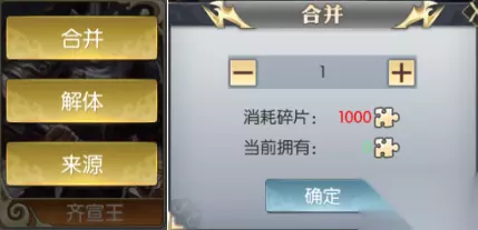 有时候急需某张卡牌时,我们也可以通过消耗卡牌碎片合并出完整卡牌,品质越高的卡牌合并消耗的卡牌碎片也就越多。