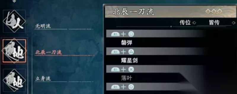 《浪人崛起》中的战斗流派是非常多的,北辰一刀流就是其中比较厉害的一个流派,这个流派一般攻击、蓄力攻击、前进攻击,均不知道有什么特别的用处。石火,追击伤害非常之低,不知道有什么用。