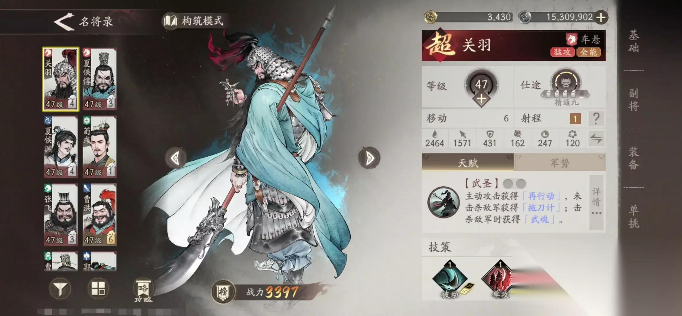 4、关羽关羽是单体输出的“神”,在攻击时附带增伤效果,实战中输出力度非常在线。核心天赋在主动进攻后,可直接触发一次在行动,满命之后操作会更加的灵活,即便没有成功将敌方击杀,还能拥有”拖刀计”,主动伤害虽然降低了,但是反击伤害直接拉满,此时的他是非常强势的。核心技能可对单体造成150%的高额伤害,在攻击时还能刷新技能冷却,让敌方无法进行普攻,效果相当全面,收益非常高。