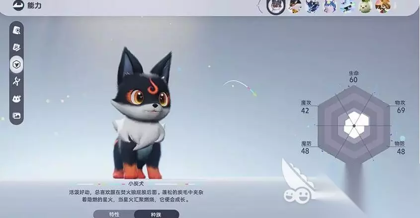 小炭犬可以说是解谜与速通核心,主线第一章自动捕获,火系专精。解谜操作细节:一方面可以点燃机关,长按喷火技能瞄准木材中心红点持续2秒(短按会点火失败)变身小炭犬后,冲刺键+跳跃键可触发“滚火球”加速,持续8秒冷却15秒,适合跑图。15级进化为焚火狼:火焰范围扩大50%,但移动速度降低,建议保留小炭犬形态赶路。