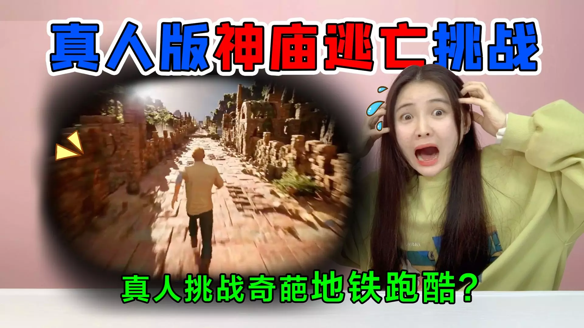 真人版跑酷挑战!神庙逃亡VS地铁跑酷,被怪物追一不小心跳河了?