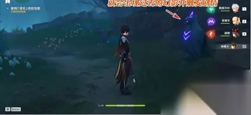 5、与幻影对话 在雷鸟雕像旁边使用羽毛后,随着周边一阵扭曲,旁边的树下出现了一个若隐若现的幻影,我们和他对话试试吧。