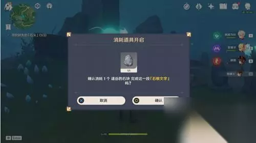 之后回到出发点,再次靠近即可消耗拾取的石块来完成这一段石根文字,开启后仙灵会变为石柱上的一个文字。