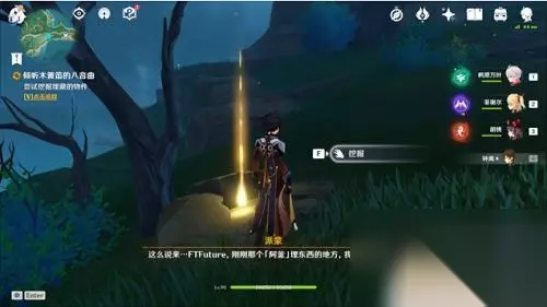 6、尝试挖掘埋藏的物件 阿瑠约好了要和卡帕奇莉见面,所以先走了。但我们在离开之前,派蒙提议挖一下过去的「阿釜」埋东西的地方,看看有什么。苍天在上,这可不是本旅行者不当人啊,是派蒙硬让我挖的,我也没办法。