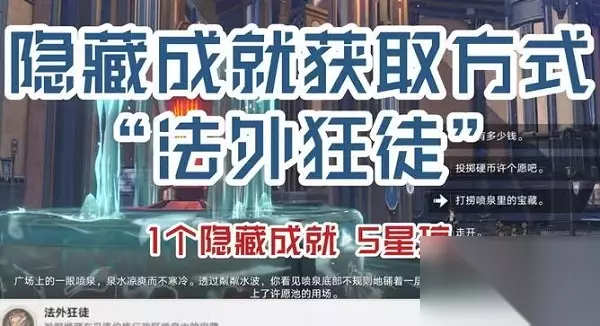 崩坏星穹铁道法外狂徒解锁方法 任务地点:中央广场 1、首先我们传送到标记的锚点,去解锁隐藏成就【法外狂徒】。 2、我们到达任务地点之后往喷泉的地方走,我们靠近喷泉点击调查即可。 3、我们与喷泉进行剧情对话,在对话途中我们需要把道具提交给喷泉,完成剧情对话。 4、最后我们操作完所有的步骤之后,就可以解锁隐藏成就【法外狂徒】。 以上内容就是为大家推荐的崩坏星穹铁道法外狂徒攻略的最佳攻略了,如果还想搜索其他游戏攻略,请收藏本网站或点击搜索更多攻略,233乐园之后会持续给大家带来更多全新的游戏攻略。