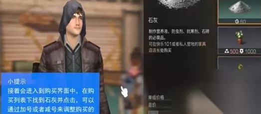 商店购买 如果不想高地采石的话,那么大家也可以直接在商店里面购买石灰,在商店里面购买石灰需要花钱,但是来的更快,有了石灰之后,那么大家就可以制作水泥了。 也可从快乐101或者私人营地的家具店经理那里获得。在店里买石灰是要花钱的,但是来的比较快。所以在收取到了快乐101,更容易找到家具店。因为门前有店员,每天都有家具店回收活动,相信很多玩家对家具店都很熟悉。找到家具店后,与店长阿姆斯特朗交谈。在交谈中询问它有什么特别之处。然后你可以看到石灰,每个酸橙需要60新元。选择要购买的数量,然后单击购买。 以上是明日之后石灰怎么获得相关内容,以及明日之后石灰获得攻略,感兴趣的小伙伴可试试看。