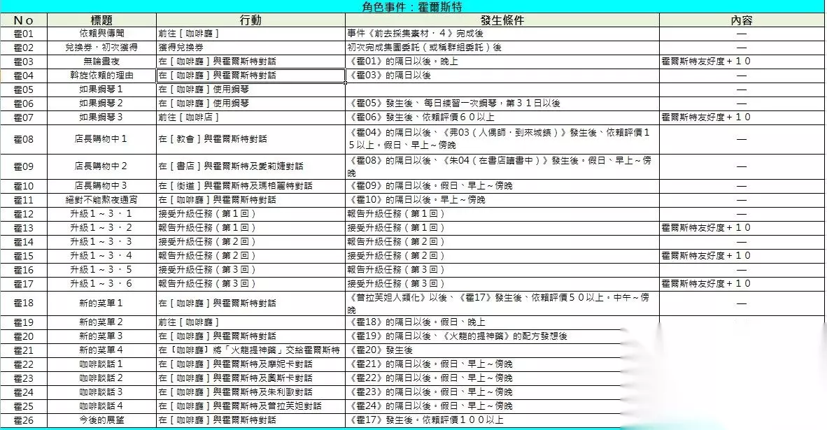 新手操作技巧大全 1.前期用你所有能想到的办法最快收集含有这3种特性的素材,用他们做出一击必杀的卡夫! 重击 两个 重击+ 一个 重击++ 一个 原理解释:重击和重击+,变成了必中重击,重击+和重击++,又变成了自信重击。所以必中重击和自信重击就成为了一击必杀! 挡你拥有一击必杀的这个卡夫攻击道具后,你的练级速度,突飞猛进,可以越级杀怪,赚多多钱,采集到更高级的素材。 2.关于物品登录,什么是物品登录功能? 答:物品登录功能是非常重要的,在幼女处可以使用,该功能可以把所有调合品素材进行复制。保留一模一样的属性和特性。说简单点,你有个很好的素材,用了就没了,你舍不得用,把他登录起来,把它复制N多个。复制的库存数和可登录个数随着剧情和幼女好感度提升而增加。 3.自动补给功能,什么是自动补给功能。 答:自动补给功能一直是炼金系列独特的模式,你辛辛苦苦做出来的好宝贝,用了就没了,是不是很心疼?自动补给功能在你每次回家后,所有消耗品,药,攻击道具,辅助道具等,立即回复到你离家时候的数量。但你需要支付一定的费用,这个费用幼女好感度高后可以减少,好感极限后索菲免费。至于开启自动补给功能,则需要推进剧情或者和幼女好感度达到一定高度。 4.大神们经常说的“反魂”,是什么东西? 答:反魂是一个场景,里面有一些稀有的独占素材。至于如何进入反魂,需要骑士的支线做完,好感度达到最高。再说详细点就是,骑士的最后一个支线,他的一个朋友右手被妖气感染,需要你做缓和异常状态的药给他。然后打败他,就可以进入反魂了。最后,平常的日子反魂是进不了的,只在种子日,每周最后一天可以进。 5.我满级了,去哪里加天赋点? 菜单——状态——属性点,进行分配和升级技能。 6.关于解锁图鉴 答:几乎所有非黑完全无法查看的少数几个图鉴,其他图鉴游戏中都有提示,请按照系统提示去解锁。如果连这都看不懂或者不想去弄,那么炼金系列的游戏不适合你哦~而另一方面,那种全黑的无法查看的图鉴,一般为剧情自动获得。 7.如何给自己换装?游戏封面那个衣服怎么弄的3 答:给自己换装需要将孔雀妹的支线做完,好感度达到最高即可。另外给个提示,如果你发现孔雀妹到处打听你喜欢什么什么东西饰品颜色的时候,恭喜你,方向正确了哦 8.关于传闻(谣言) 答:传闻你可以理解为花钱购买一些稀有好素材的方法。分为三种传闻:素材传闻,同伴喜好传闻,BOSS传闻。素材传闻可以到传闻指定地点,采集到一些稀有的好素材。同伴喜好传闻会告诉你谁谁谁喜欢什么东西,讨厌什么东西,防止你送错他不喜欢的。BOSS传闻会出现BOSS,打败后得到稀有素材。 9.关于炼金釜(锅) 答:游戏中一共有几种不同的釜,他们都有各自不同的特点。拥有一个好炼金釜肯定是很重要的,因为釜是本。如果你一开始做不出来包含可旋转,6X6,奖励3等满额的极品锅,请不要着急。你可以理解为一锅套一锅。你用每次剧情获得新种类的锅一般都能做出之前种类的极品锅。比如:奶奶锅,你做不出来极品的,那么等你剧情获得达人锅的时候,你用达人锅,一般就能做出极品满额奶奶锅,依此类推。达人锅的计时系统,新手玩家可以多用S/L方法。 10.光精灵BOSS怎么打? 答:光精灵和魔王是本作最难打过的BOSS。两者都是通过传闻接取,而魔王需要打过所有类型的BOSS才会出现传闻。光精灵擅长群体AOE伤害和丢各种五花八门状态,甚至还会令玩家当前生命上线减半。而魔王稍简单些,它会疯狂的给自己回血,偶尔丢状态给玩家。这两种BOSS推荐将游戏难度调为简单,装备、道具、天赋点强了以后可以打过。因为回合制游戏没有什么操作技巧,你说100的血,再大的技巧也不可能刚的过光精灵和魔王。实力强大,才是RPG的王道。 11.彩虹普尼怎么打,为什么打它几乎不掉血? 答:彩虹普尼在未崩防之前,拥有极高的减伤效果和高几率防状态属性。消灭它需要现将它的防御瓦解,然后集火消灭掉,建议使用高崩防的效果技能。当然,后期装备起来后随意摩擦。PS:请注意它不是果冻,不可以吃 12.被遗忘的材料如何获得?获得了也只有一个,做终极装备需要好几个呢,去哪里获得更多? 答:被遗忘的灵树——书店近视妹(三批问答都答对,一共三批,每批3个问题,总共9个问题) 被遗忘的宝石——教堂捐款给幽灵老祖宗1W(什么?你问我幽灵老祖宗是谁?!) 被遗忘的矿物——骑士支线全部推完然后找他要,就说楼主说的让他给你,他就会给你 被遗忘的零件——兔子支线推完,第一次是炸药,第二次是除草,第三次是糖浆 那么,除了剧情获得这个四种材料,每种只有1个,虽然武器店罗吉不会要。但是终极武器却又好几个,一个矿石怎么够?这里就需要后期接传闻反复耍取了。每种BOSS高难度模式下,均有概率随机掉落被遗忘的材料。 13.为什么有时候队友的好感度字体变成红色的了,不会往上涨,就像好感度卡住了一样? 答:这是因为你太久没有与该队友进行互动事件。不用担心,这种情况一般只要多与该角色凑热闹,推进与他/她的支线故事,好感度字体由红色变为白色,你就可以继续赠礼来提高好感度了。 14.钱不够用了,如何快速刷钱? 答:任何RPG游戏,金钱系统永远是最重要的。有两个地方可以刷到钱,这两个地方需要剧情推到一定地方才会解锁。一个是地底湖,一个是水滨遗迹。而较两者,前者进入战斗后只有一只金普尼,打完只