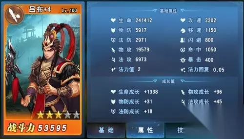 武将属性共分为基础属性及成长值两类,条目比较清晰,从字面意思就可理解个大致