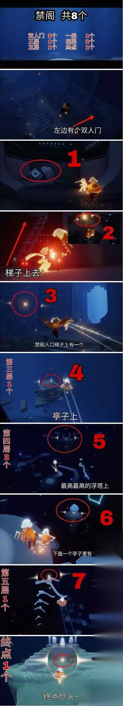 光遇小金人一共多少个?光遇小金人都在哪些呢?光遇小金人分布在各个地图上,其中晨岛5个、禁阁8个、暴风眼10个、雨林和暮土11个以及霞谷11个,很多的玩家都不知道具体的位置,下面233乐园小编就给大家带来光遇小金人全部位置图文攻略。 光遇小金人全部位置图文攻略 一、晨岛地图(5个)第1个小金人位置:在入口山顶。