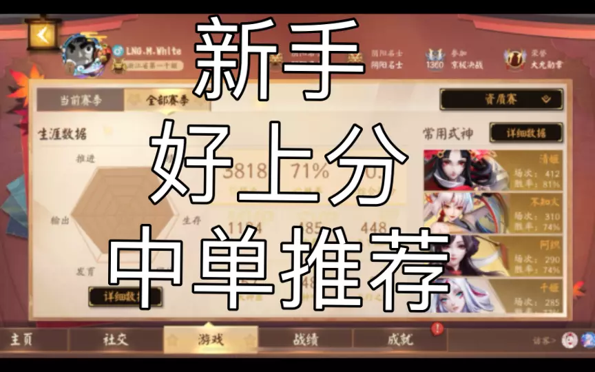 实战视频可以从我主页搜索式神名字