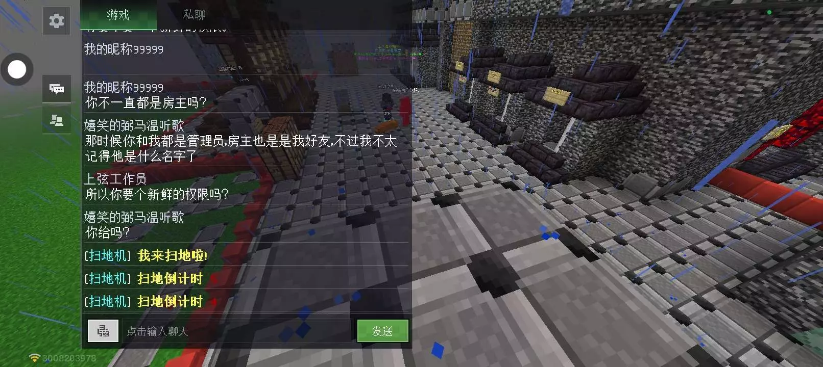 的房间他们聊起来了,我就暂时制裁了,最后制裁了几次了因为房主开房熊没制裁成功第二次第三次制裁成功了主要就是我偷偷摸进泥土商店里面玩了一把32k铁铲,然后来了生存青金石一挖崩了!