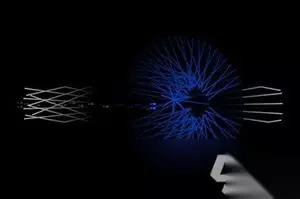 《Dark Echo回声探路》黑章第15关通关攻略 图文攻略: 1、首先使用最大的波幅来探查一下周围的环境,接着向右侧前进,来到一个蓝色区域,继续向前;