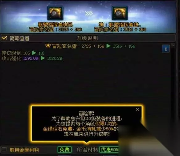 5、装备升级 点击装备进行升级,每升一件可以提高800点声望,全身升至神界即可。
