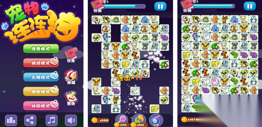 是消除题材的休闲小游戏,里面有很多可爱的小动物,需要用消除的方式来操作,当触碰到两个外形一模一样的小动物时,之间就会产生一道线条,然后它们会同时消失不见。在这款游戏里面有五种不同的玩法,喜欢的朋友可以自己体验一下。 高速下载 普通下载 优先233乐园APP下载 5、《单机连连看》