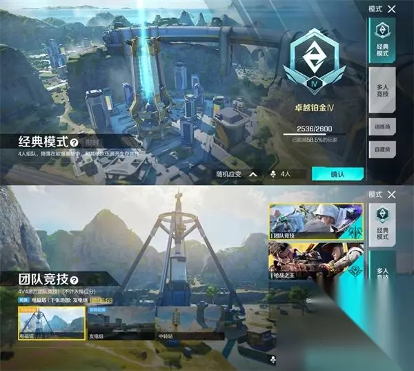 至于地图中的一些道具方面的东西,我在【局内道具解析】中再给大家详细介绍一下。 而剩下的娱乐模式就是(团队竞技和枪战之王),目前团队竞技有三个图,分别是(电磁塔,发电组,中转站),三个地图会每过一段时间互相轮换。 团队竞技就是字面意思,双方首先击杀到指定人数就取得获胜。地图方面实际上非常小,所以基本上出门就是打架,可以说是钢枪爱好者的天堂。