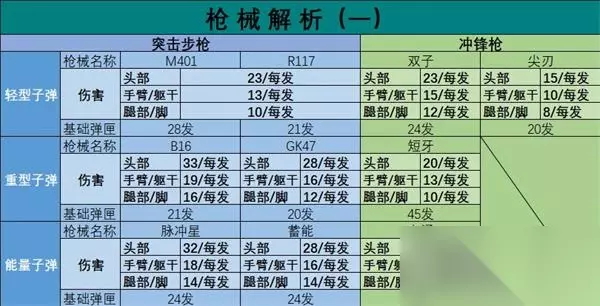 根据个人测试压枪稳定性和伤害的对比,得出以下结果: 单发伤害:重型≥能量>轻型 压枪效果:轻型>能量>重型 如果你追求伤害和压枪两者兼得的话,个人建议选择能量子弹的步枪,也就是脉冲星,如果追求压枪就选择轻型,追求伤害的话就能量和重型都行。 冲锋枪方面,就4把,选择不多基本上就在短牙和双子这两个进行选择。因为剩下的尖刃和电涌在伤害和基础弹匣方面都不占优势,我们直接排除掉。 双子的优势就是伤害会高一些,基础弹匣也够用,而短牙的优势就是基础弹匣可装子弹多,虽然伤害相比起双子低了一点点,但实际上问题不大,所以我个人建议选择短牙,为什么呢? 因为冲锋枪的优点就是子弹发射快,并且容易压枪。而且冲锋枪的射击有效距离会比较短,适合和敌人贴脸对枪。所以相比起伤害什么都缺失一点点,一个弹匣装的子弹越多越好,而且短牙的伤害也不会太低,所以选择短牙冲锋枪会更好。