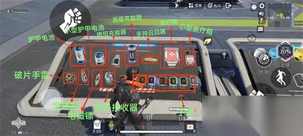 治疗道具分为护甲和血量的质量,各两种——小型和大型。另外还有一个高级充能器,能直接回满护甲值和血量。一般这个高级充能器有1-2个就够了。 前面提到的4甲可以使治疗效果翻倍的是只有小型电池和小型医疗包,这点需要注意。 一般我们在对战的时候,优先使用护甲电池或者医疗兵,比较小型的治疗效果太少了,并且消耗的时间也多,毕竟前面使用前和使用后都有相应的前后摇时间。