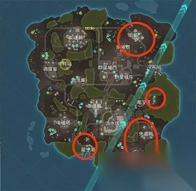 上图就是某一局的航线,途中画圈的是可以选择跳伞的地方。可以发现都是靠近航线但不在航线正下方。 这局我跳的是发电组和先遣地。因为这两个地方靠近航线,物资也不是非常丰富,所以一般不会有很多人来这。其次也可以选择跳星空港和淹没区以及组装厂,这几个区域都是物资一般,去的人不多的地方。 不选择跳流水线是因为流水线大,物资相对好一些,跳的人多,我们跳流水线容易落地价就钢枪。 总结一下: 野外游走发育可以当独狼,但要是遇到抱团行走的玩家不建议正面交锋,而是去找队友。团战的时候技能不要随便用,例如猎人的技能虽然可以发现敌人,但也会让其他人发现周围有人。团战的时候也是以抱团位置,尽可能的集中攻击一个队伍,而不是队友攻击其他队伍,我攻击另外一个队,这样子很可能导致什么被夹在中间。