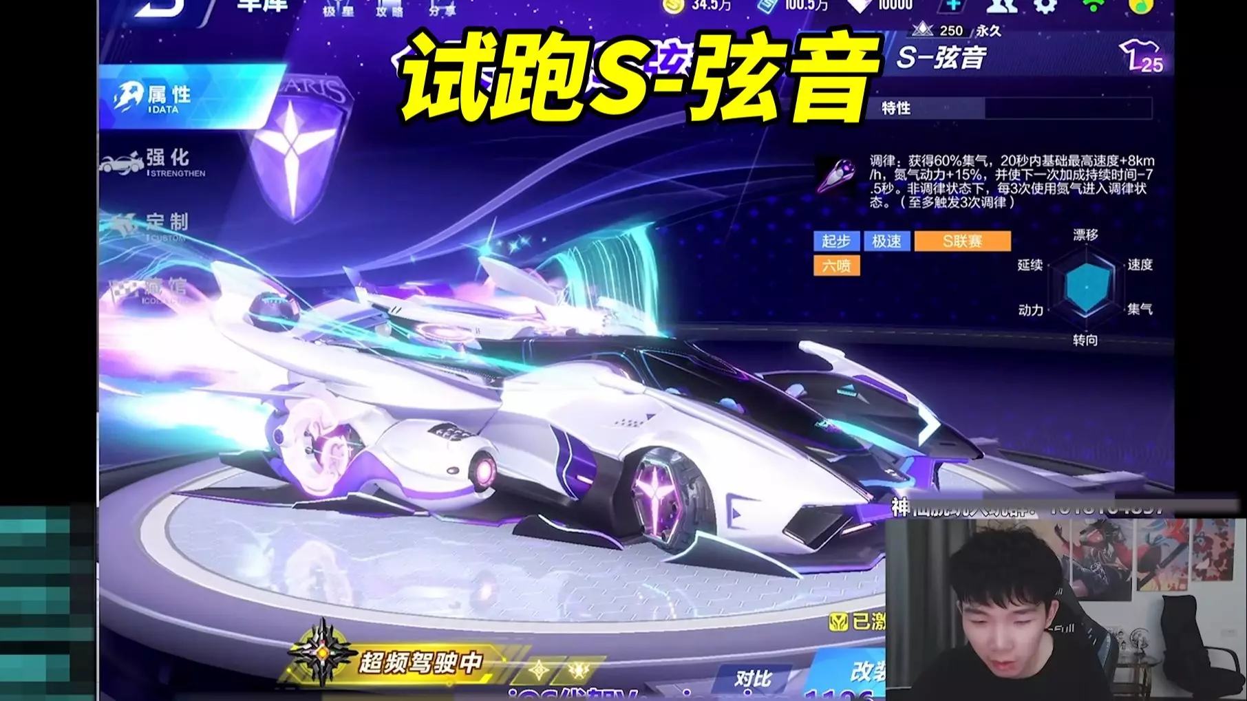 这是QQ飞车的S-弦音馥梦大喷局内试跑内容,展示了S-弦音赛车及其弦音RSG、弦音天使之羽等皮肤,还呈现了装配弦音馥梦大喷后在赛道上的氮气延续等跑表现,该大喷可在车库定制中更换使用。