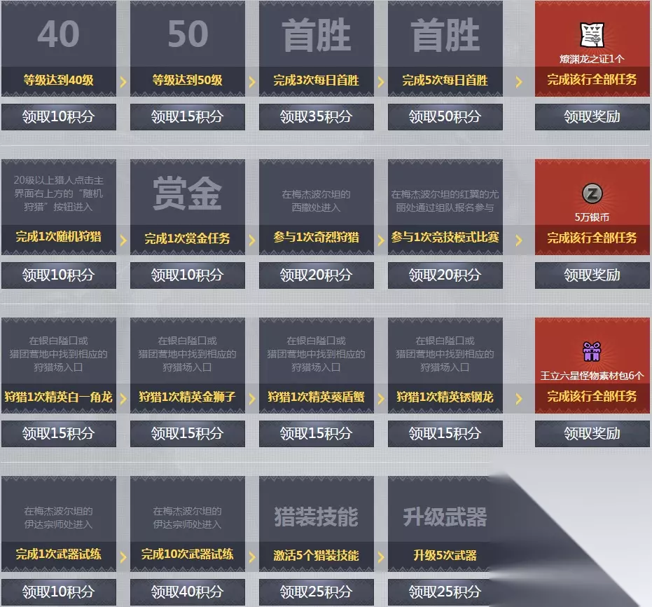 完成相应任务即可领取积分以及对应奖励