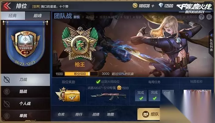 CF手游排位赛段位 还有就是队友开黑了,虽然说五黑凑起来是有点困难的,但是找个两个大神还是比较容易,这样一局比赛还是能够稳妥的拿下,如果你有加入战队,那么召唤小伙伴就更加容易了,稳妥的上分,枪王指日可待。有兴趣的小伙伴也可以和小编一起开黑哦,打造最牛逼的车队。