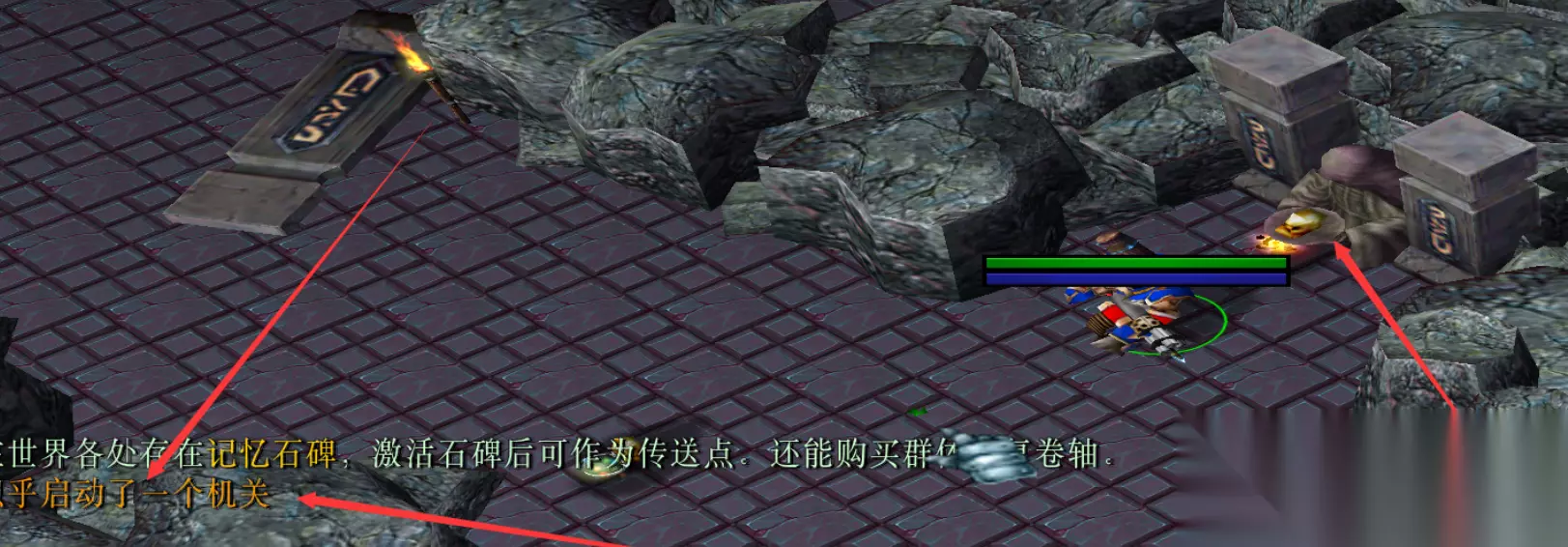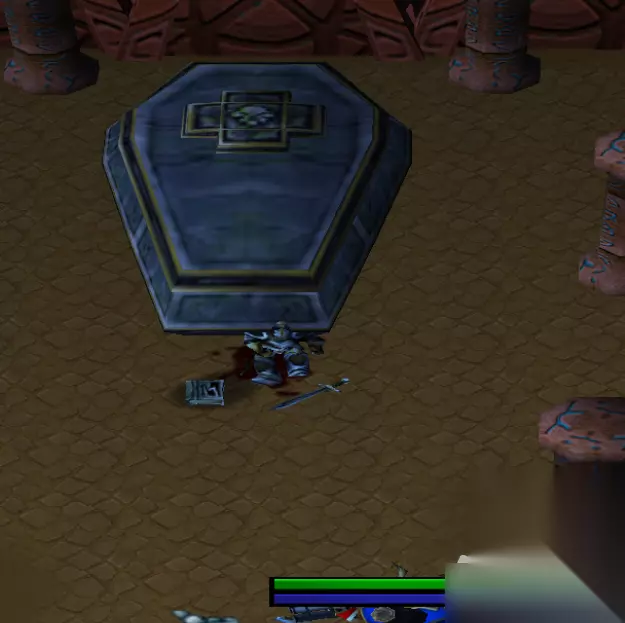 进入后向下走,会碰见死灵法师,击杀后大门打开,进入后会看到一口棺材,捡起地上的探险笔记本后BOSS出现