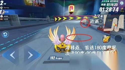 【赛道近道解析】 第一个近道是平地“U”形近道,属于比较常见的近道。 难点:道路偏窄容易发生碰撞导致减速甚至撞停,赛道隐蔽不易看见,当车手看清近道之后却发现错过了超近道的时机。 解析:该近道考验的是车手的反应能力和对时机的把握,可以在模糊的看到近道之后便进行漂移或者在比赛时靠向左方行驶,漂移时推荐断位90度漂移和180度甩尾漂移,这样可以加快过弯的速度。
