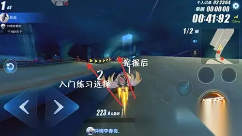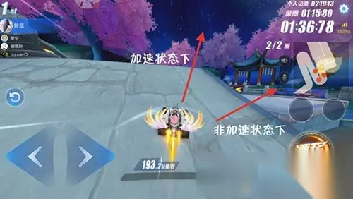 【隐藏近道解析】 广寒仙境有一条隐藏近道,许多车手都没有注意,那就是第十个弯道之后的拱桥。 解析:这个拱桥可以使玩家飞跃大段距离,拥有氮气加速时甚至可以飞跃过第十一个弯道,比正常飞跃远上不少,可以节约1到1.4秒的时间。操作技巧是在第十个弯道集满一个氮气加速,在加速同时使用加速点漂,快速集满一个氮气,快上拱桥时使用氮气提升速度,赛车方向偏向于右上角(如图所示),这样一来就可以直接飞跃大端距离,将对手甩在身后。 注意:在落地之后赛车会继续向前行驶,为了防止出现撞停,可以选择在落地之后进行120度的漂移,切记落地后不要小喷,否则速度过快会无法稳定车身,等漂移调整好方向后,再按小喷键加速,远离赛道边缘,稳定车身,防止碰撞。