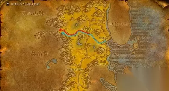 【攻略大全】 石爪山脉进入路线 一、进入路线 1、部落:贫瘠之地十字路口-沿大路往西-石爪山脉 2、联盟:荆棘谷藏宝海湾坐船-棘齿城-沿大路往西-石爪山脉 注:图示路线部落为红色,联盟为蓝色