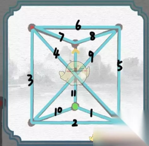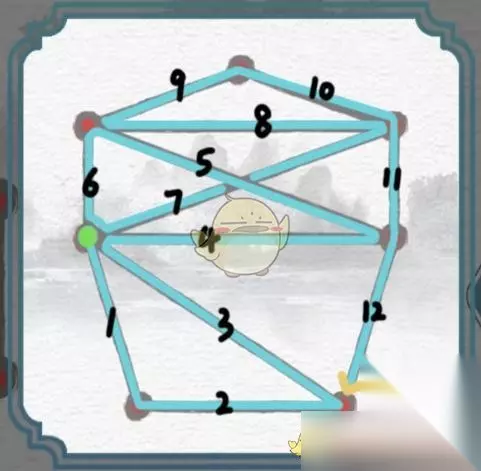 2、这一关不仅要连上所有的点,也需要把所有的线一笔画连上,而且不能重复,答案如下图所示: