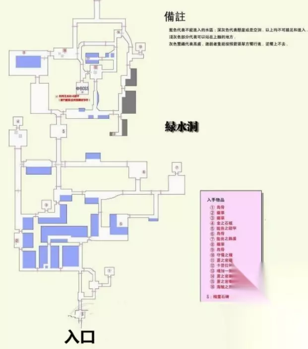 伊苏6绿水洞宝箱地图位置一览 伊苏6中绿水洞是一个比较复杂的洞穴,尤其是里面有几个宝箱位置藏的比较深,不少玩家找不到在哪里,所以我们索性找了一张完整的地图,一眼就能找到所有的宝箱位置了。 绿水洞宝箱位置: 下面就是绿水洞所有的宝箱位置了。 一共有16个可以收集的物品,有些不拿也没事,其中比较重要的是金之石板、神水、饰品装配孔和2件装备。