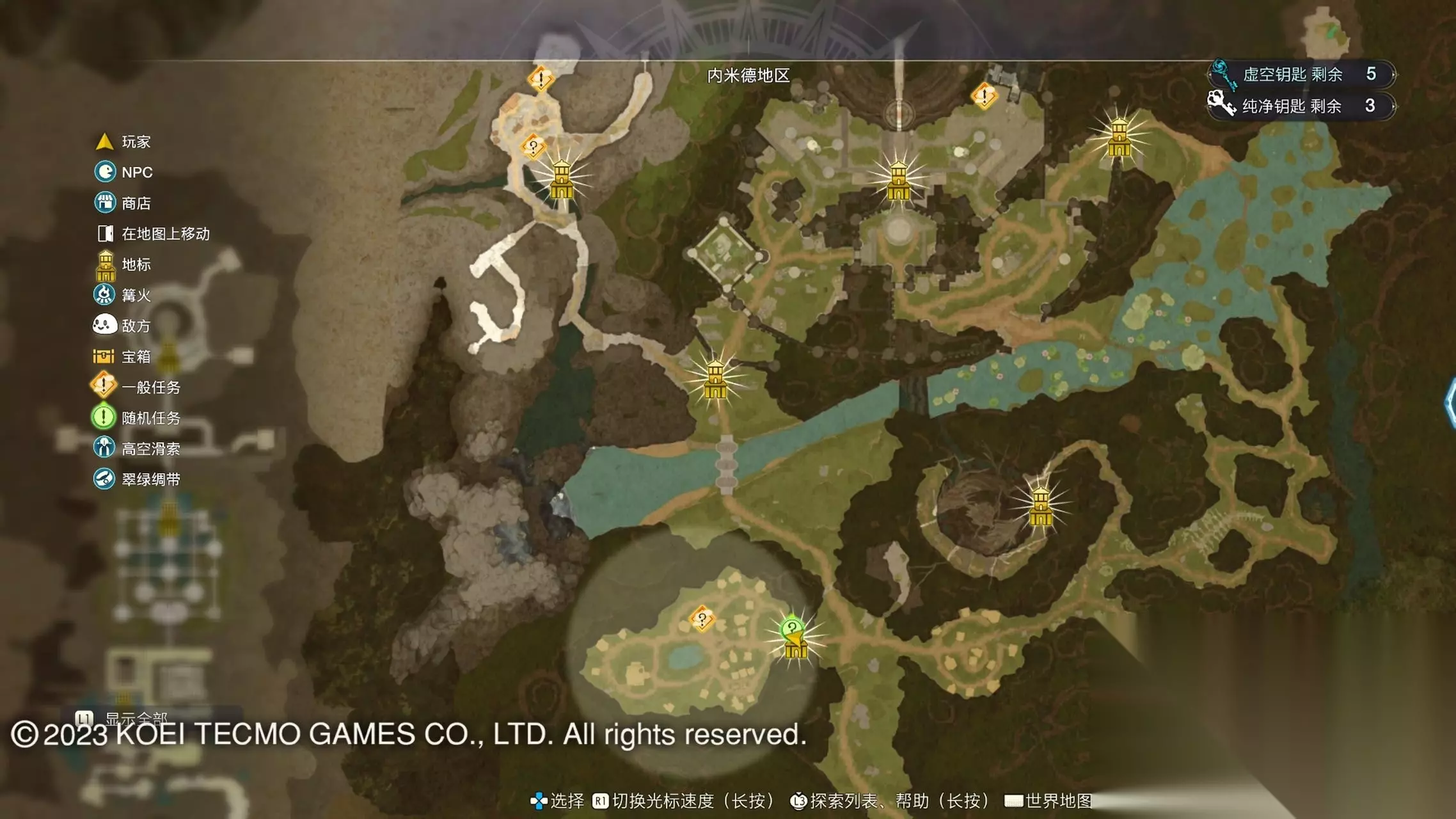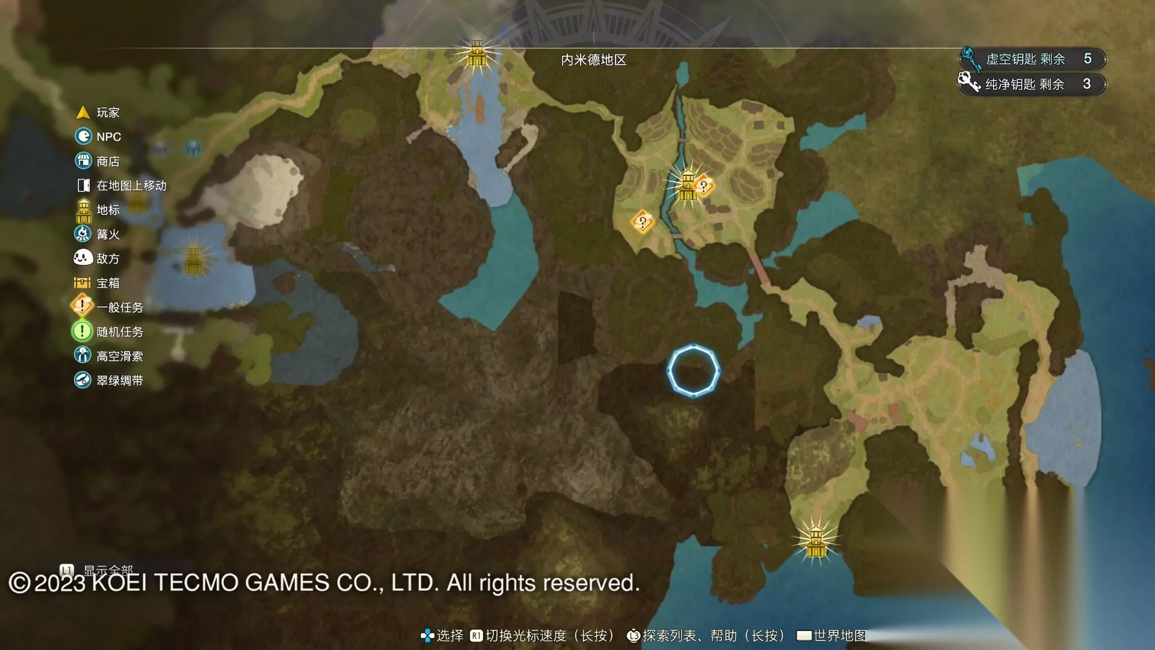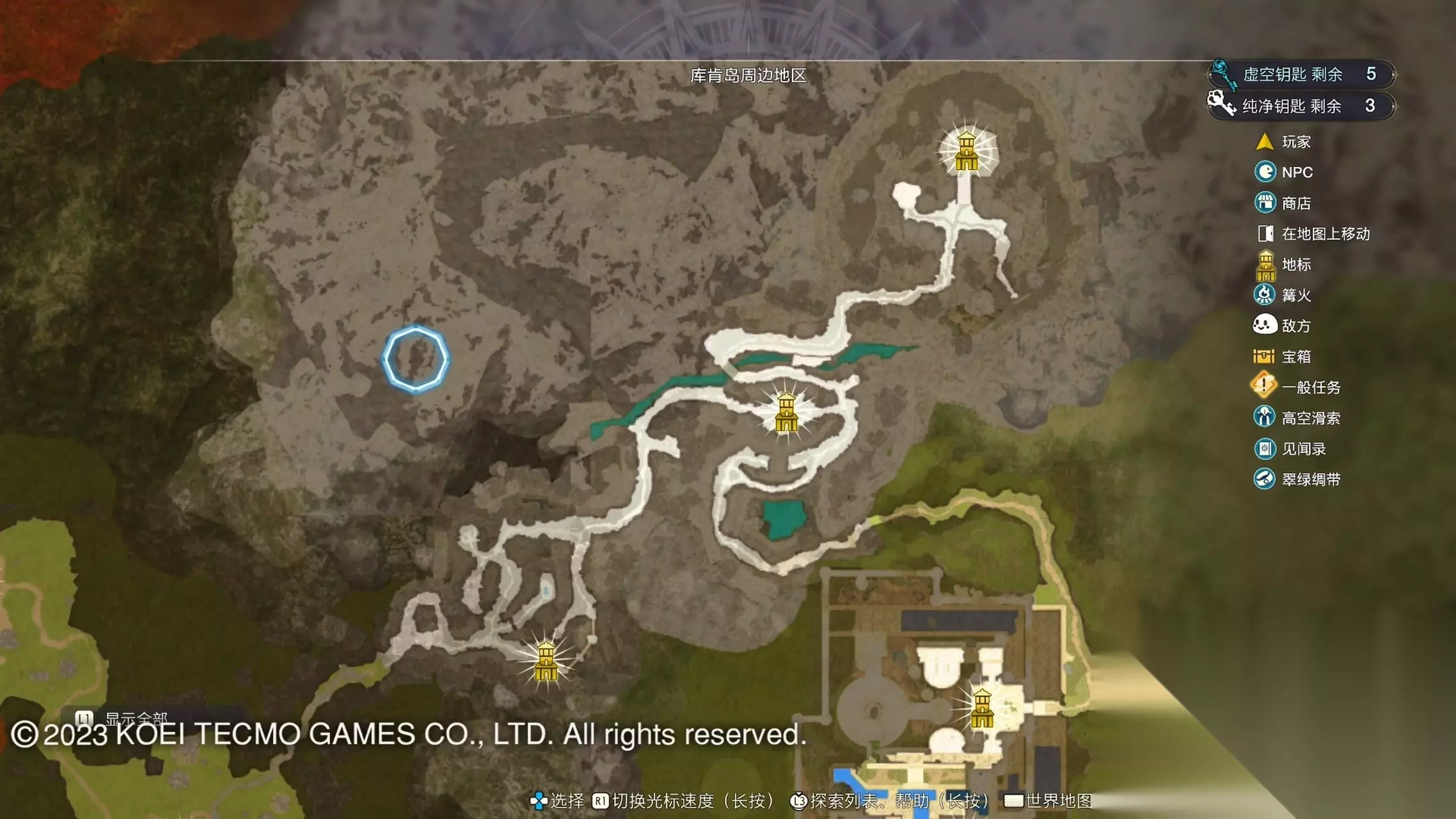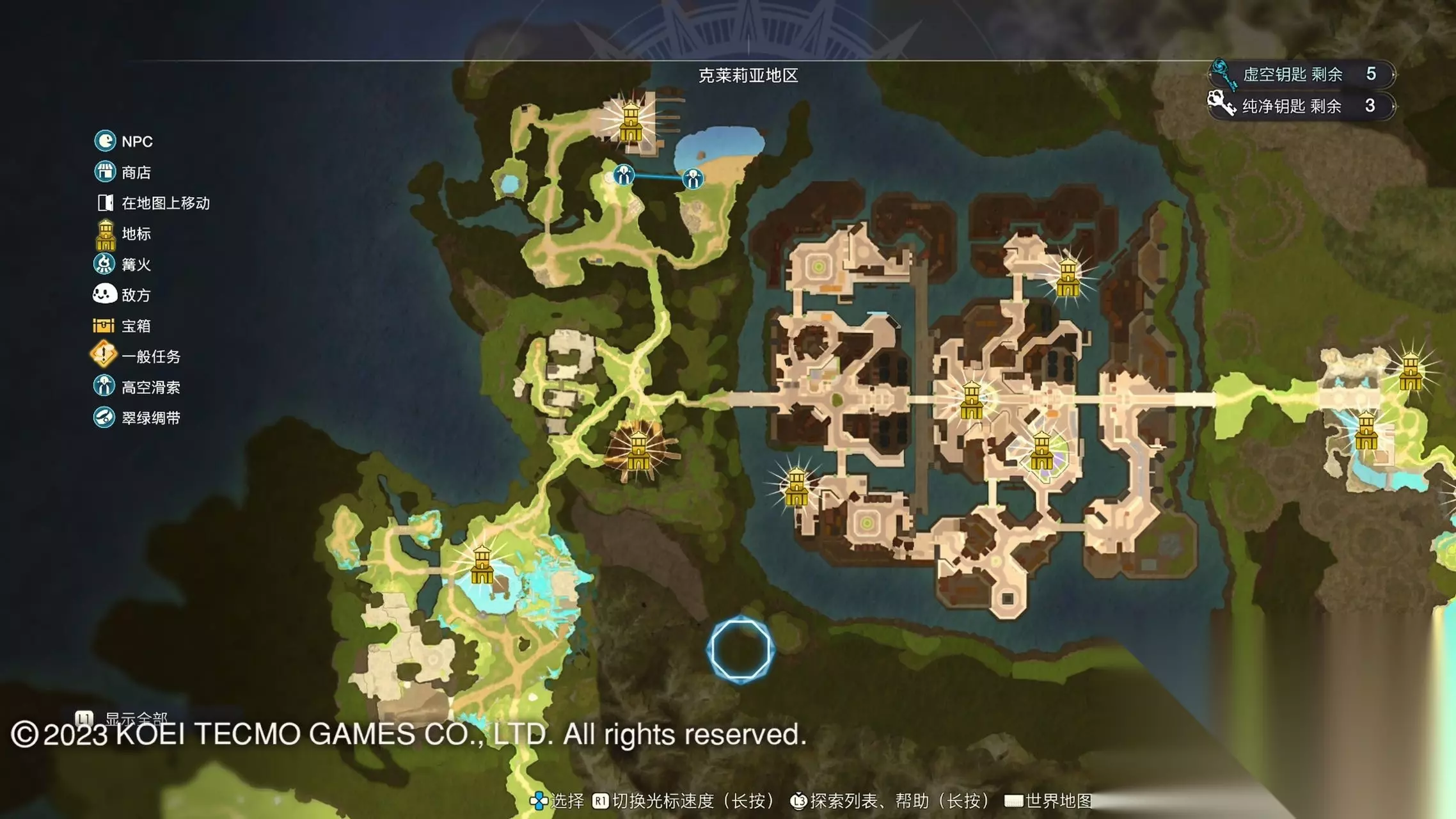 《莱莎的炼金工房3》全地图地标位置图 一部分地区需要翠绿绸带、地兽的龙吼、水兽、空气糖才能进入,所以建议初次到达新地图的时候不要着急到达所有地标。最后准备收尾的时候先做出带有召唤灵兽・超、地兽吐息强化・大的召唤师之铃和带有连结水晶・全的翠绿绸带以后再去探索地图。召唤灵兽・超可以让灵兽的移动速度达到最快。 还有一些地方的门或者结界需要用对应属性的钥匙开,有时候第一次到达的时候没有提示,不用着急以后再来就可以开了。如果缺少对应属性的钥匙就快速移动到各个地标用虚空钥匙做新钥匙即可。 这里我把已经全开的地图放上,有一些比较绕的路大家可以照着图来跑。 库肯岛周边地区 库肯岛的地标全部是自动发现的 小妖精森林