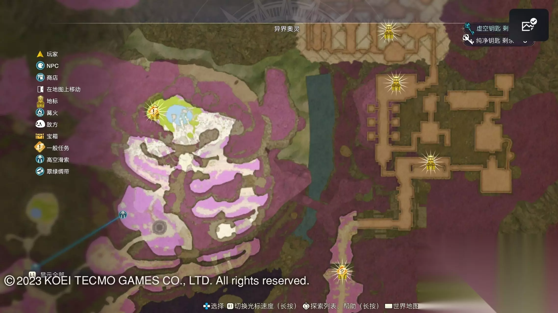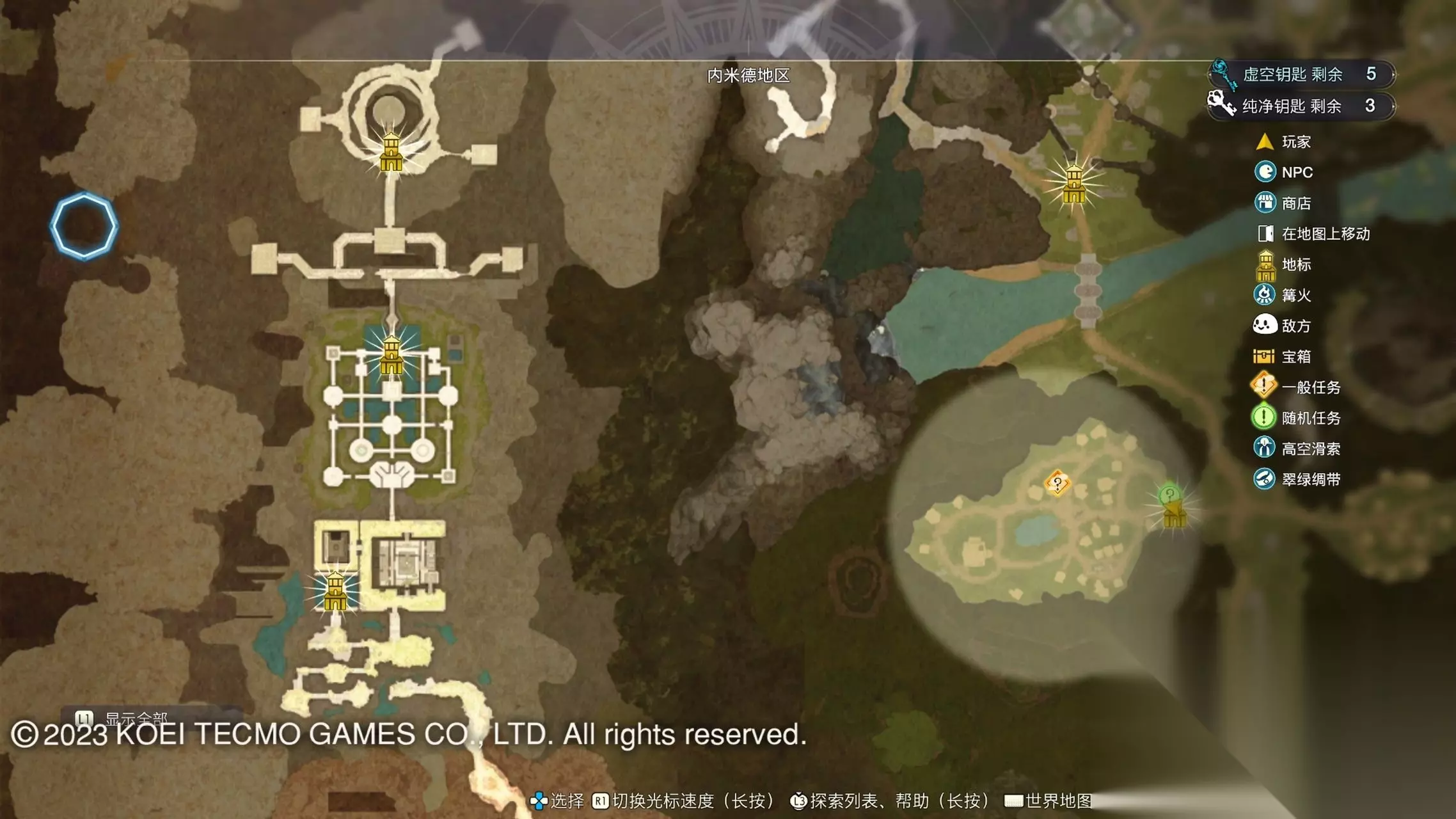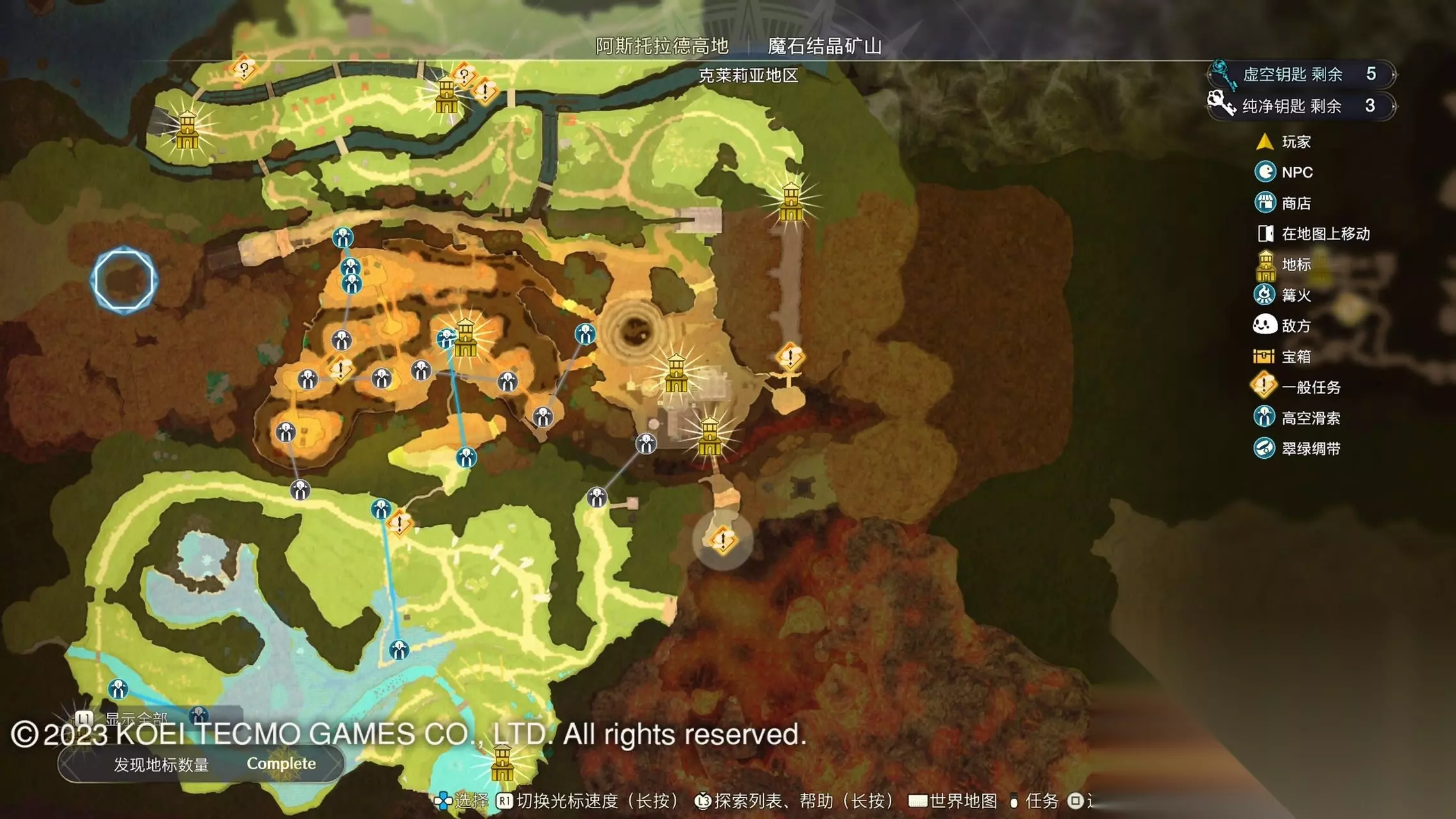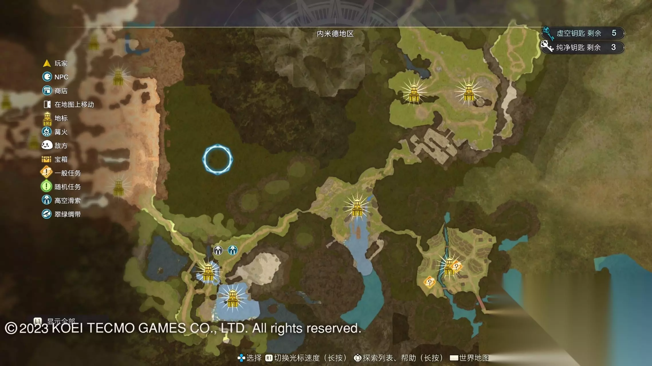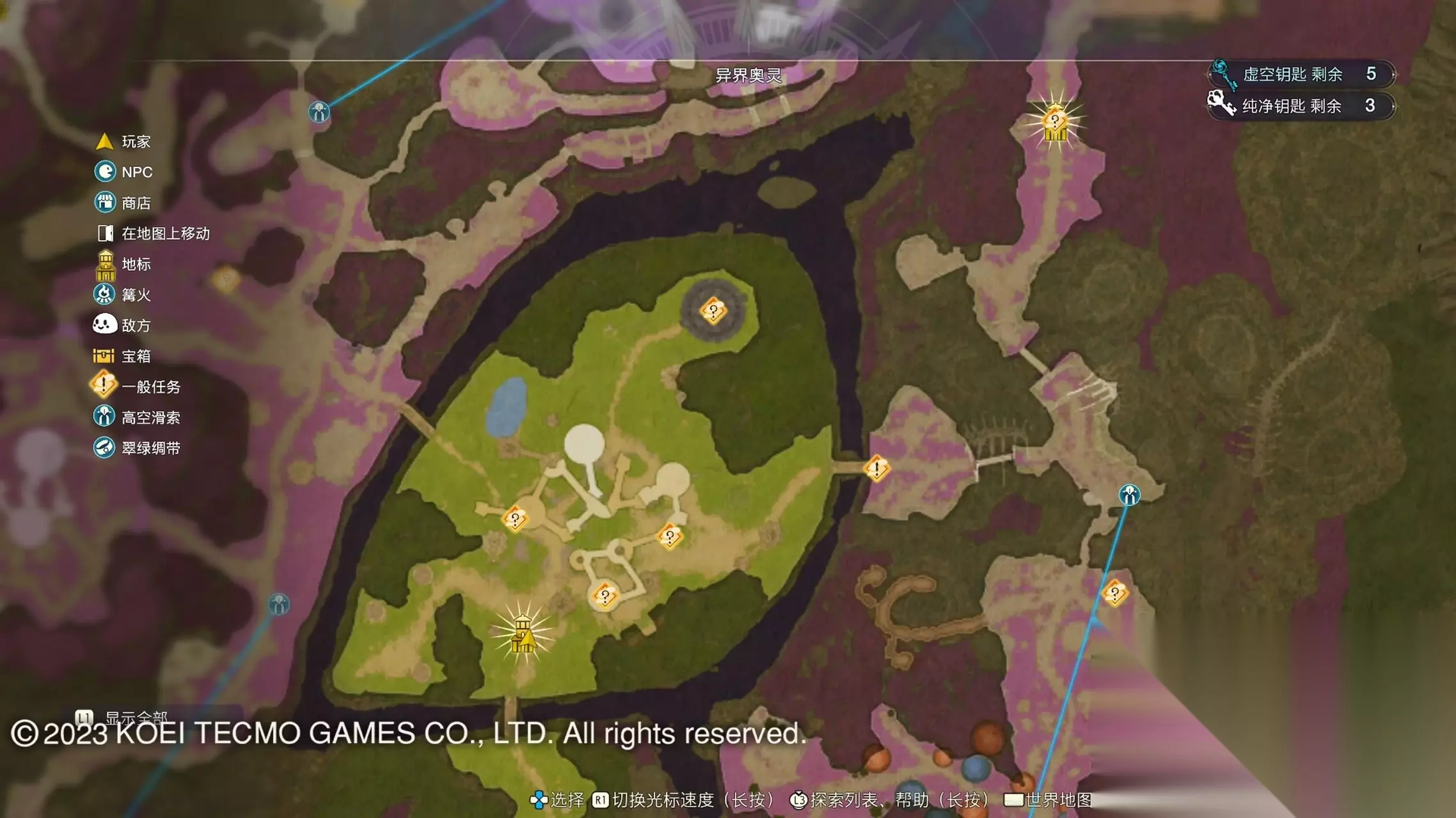 《莱莎的炼金工房3》全地图地标位置图 一部分地区需要翠绿绸带、地兽的龙吼、水兽、空气糖才能进入,所以建议初次到达新地图的时候不要着急到达所有地标。最后准备收尾的时候先做出带有召唤灵兽・超、地兽吐息强化・大的召唤师之铃和带有连结水晶・全的翠绿绸带以后再去探索地图。召唤灵兽・超可以让灵兽的移动速度达到最快。 还有一些地方的门或者结界需要用对应属性的钥匙开,有时候第一次到达的时候没有提示,不用着急以后再来就可以开了。如果缺少对应属性的钥匙就快速移动到各个地标用虚空钥匙做新钥匙即可。 这里我把已经全开的地图放上,有一些比较绕的路大家可以照着图来跑。 库肯岛周边地区 库肯岛的地标全部是自动发现的 小妖精森林