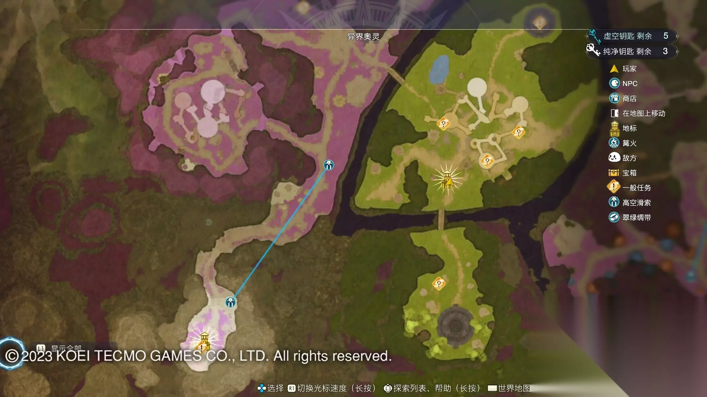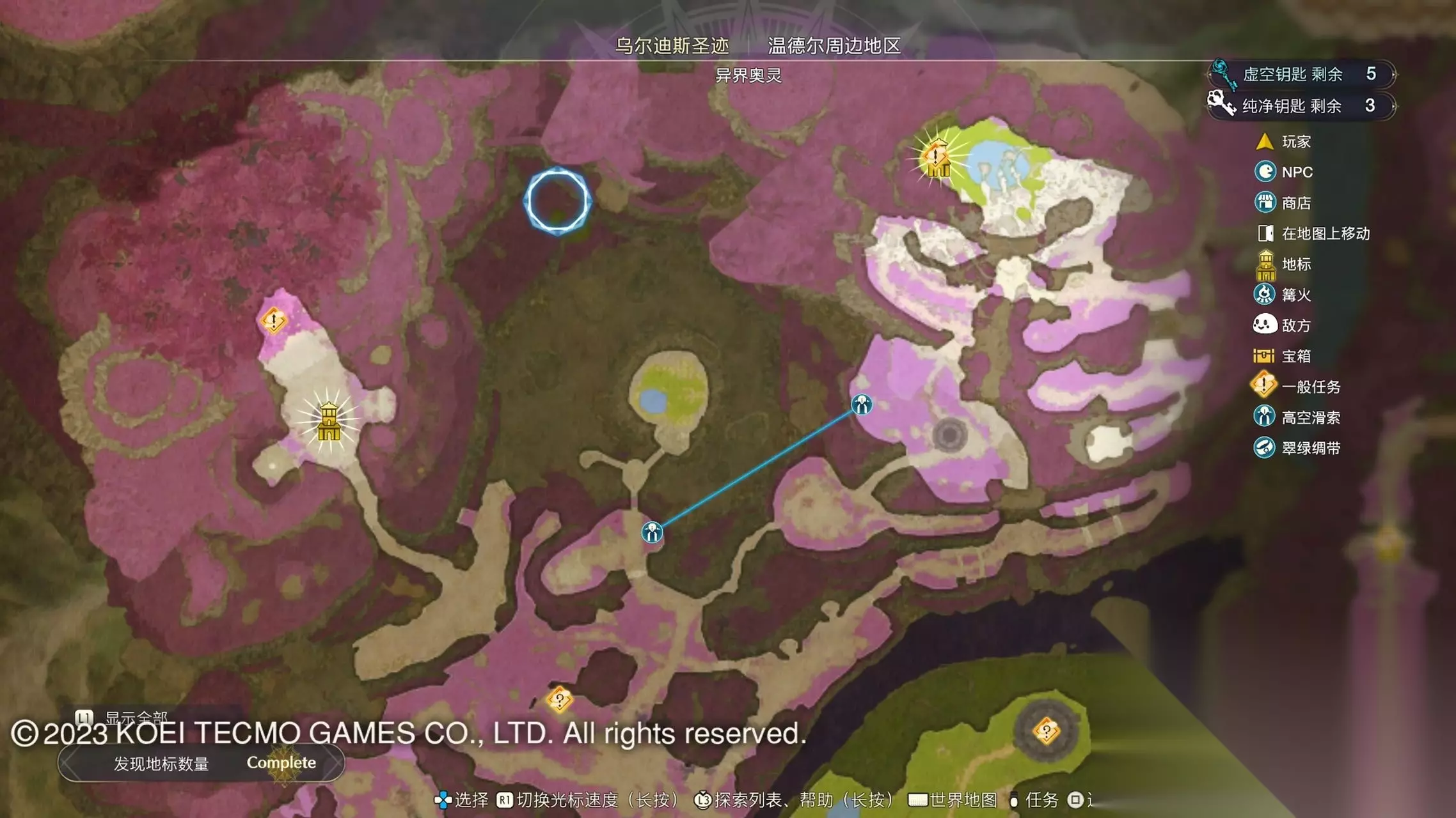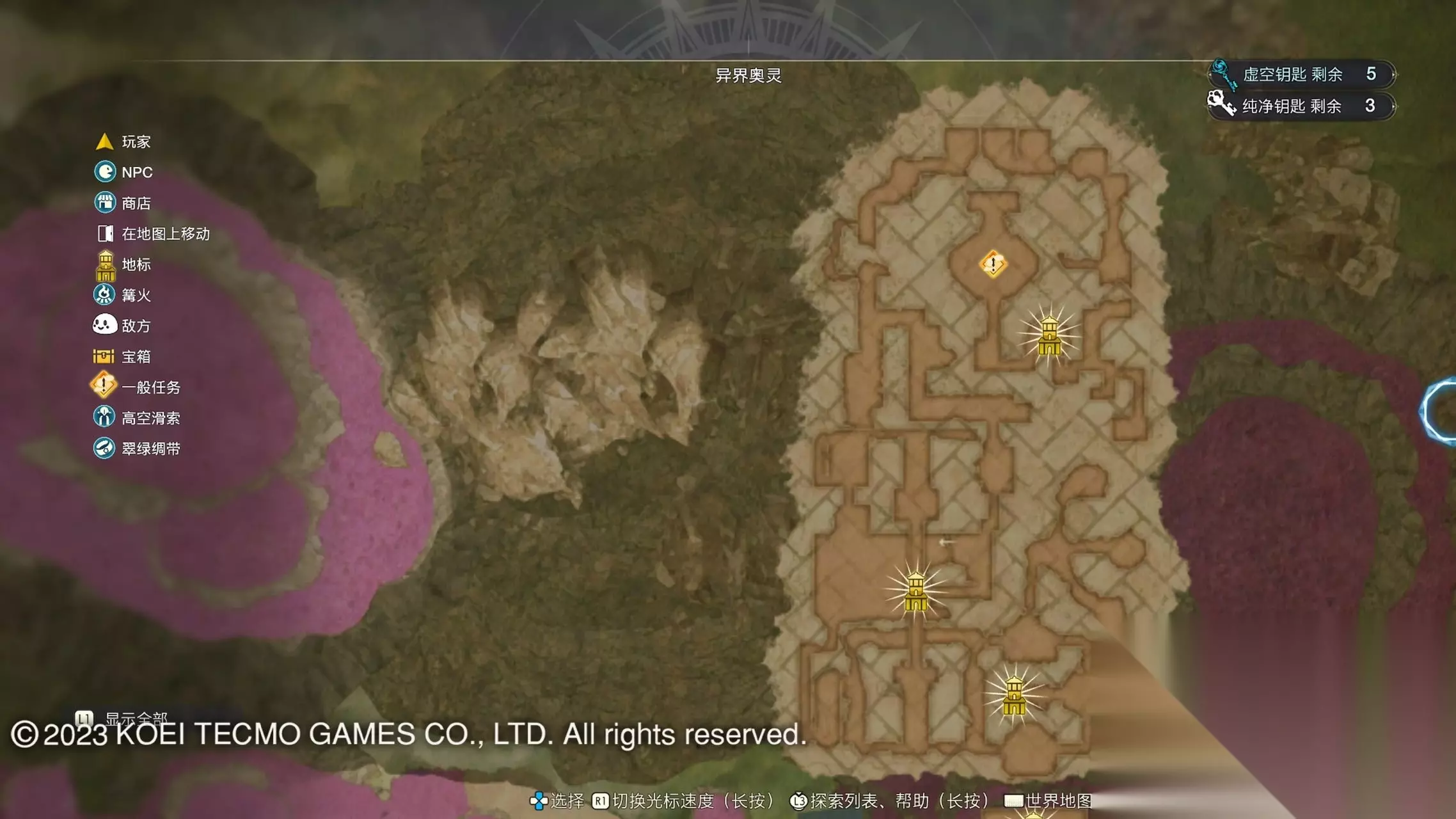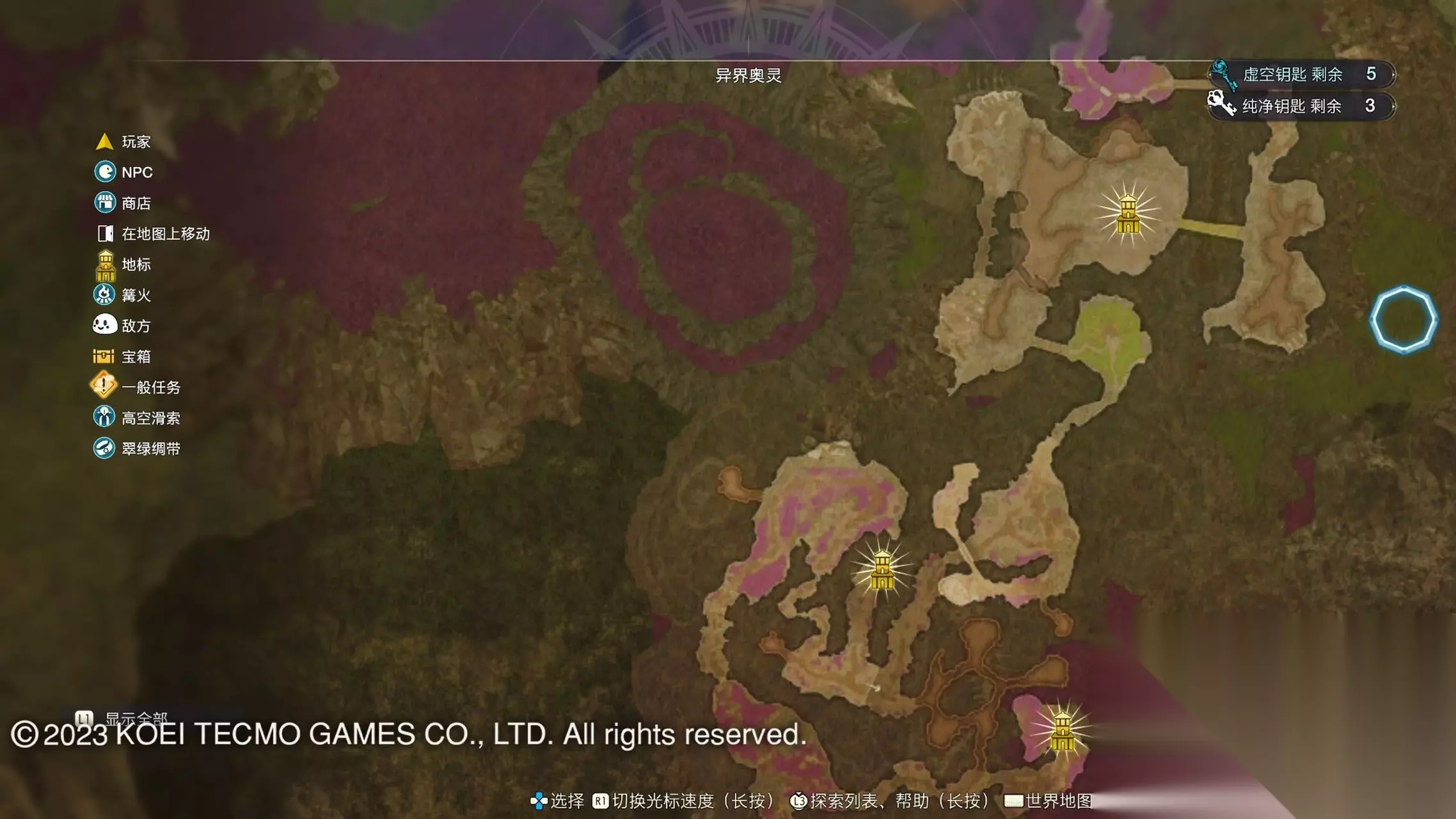 《莱莎的炼金工房3》全地图地标位置图 一部分地区需要翠绿绸带、地兽的龙吼、水兽、空气糖才能进入,所以建议初次到达新地图的时候不要着急到达所有地标。最后准备收尾的时候先做出带有召唤灵兽・超、地兽吐息强化・大的召唤师之铃和带有连结水晶・全的翠绿绸带以后再去探索地图。召唤灵兽・超可以让灵兽的移动速度达到最快。 还有一些地方的门或者结界需要用对应属性的钥匙开,有时候第一次到达的时候没有提示,不用着急以后再来就可以开了。如果缺少对应属性的钥匙就快速移动到各个地标用虚空钥匙做新钥匙即可。 这里我把已经全开的地图放上,有一些比较绕的路大家可以照着图来跑。 库肯岛周边地区 库肯岛的地标全部是自动发现的 小妖精森林