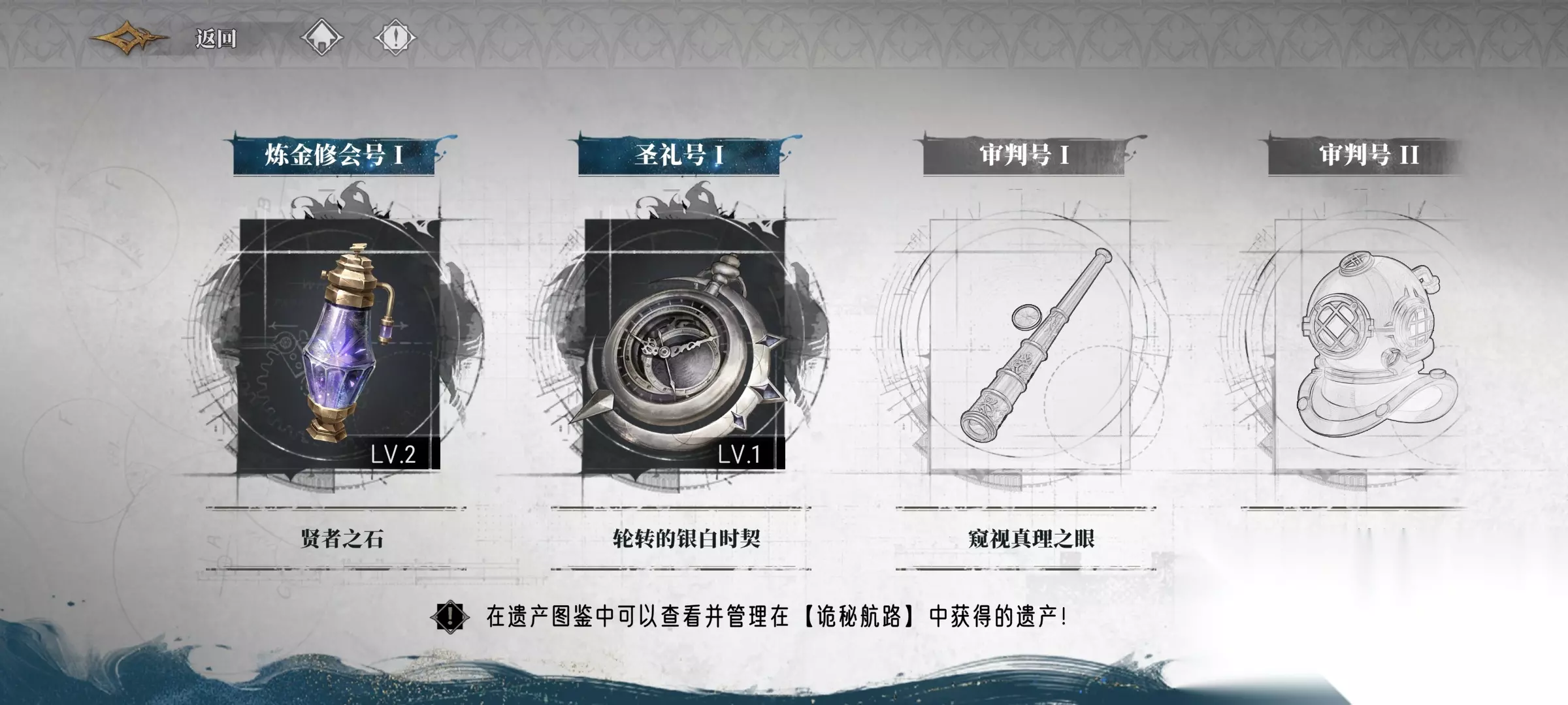 游戏当中的遗产功能,可以增加眷属的基础属性,当然,特定的眷属,也拥有特定的遗产道具可以搭配,遗产效果包含有生存效果、输出效果、辅助效果,玩家可以根据眷属的定位,进行装配。 但游戏的遗产功能,有一定的解锁前置条件,那就是玩家必须要完成,主线剧情内容6-1,同时解锁“诡迷航路”玩法,在这之后,玩家才能够继续开启遗产剧情,同步开启遗产玩法。 当然,玩家也可以通过后续,直接进入到“诡迷航路”的方式,完成解密关卡,直接获取遗产的蓝图,遗产的蓝图可以前往商店内,直接兑换遗产的升级类道具。