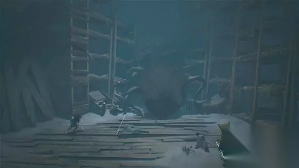 第五章:深洞之下 在章节最后和蜘蛛母体的boss战中,每一次母体攻击后会生成2-3只幼体,你需要使用鱼叉射击其中的1只幼体(时间不够射击第二只),重复10次。(不要先击杀母体,否则幼体不会再刷出,且剧情会继续推进,如果不小心击杀了母体,它会从洞穴离开,此时可以快速重新读档)