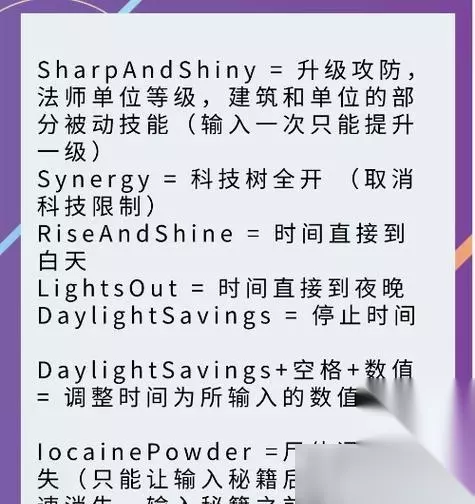 常见问题解答 Q:使用秘籍会影响游戏成就吗? A:使用秘籍只会影响单人游戏体验,不会影响你在多人游戏中达成的成就。 Q:秘籍是否只对特定版本有效? A:秘籍是游戏开发时嵌入的功能,通常在所有标准版本中都有效。 Q:如何关闭秘籍效果? A:关闭秘籍的效果很简单,只需要在控制台输入`whosyourdaddy`或`greedisgood`秘籍后,再输入一次即可取消秘籍效果。