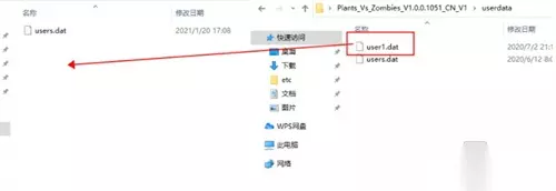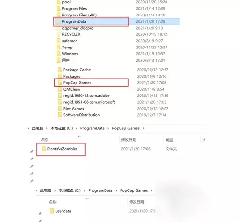 然后我们按照自己按照植物大战僵尸的路径找到userdata这个文件夹。比如:C:ProgramDataPopCap GamesPlantsVsZombiesuserdata。