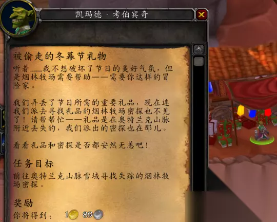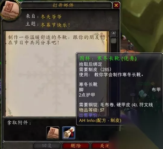 上线之后,只要打开邮箱,就能收到冬天爷爷发来的祝福邮件呢。而且呀,还会得到一张跟玩家专业相关的图纸。得到这些馈赠之后,就前往奥格瑞玛或者铁炉堡去找冬天爷爷报到吧。