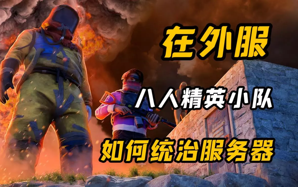 这是生存游戏《RUST腐蚀生存》的相关内容,展示了四名中国玩家在外服,通过“0元购”的方式获取装备,对抗其他玩家,最终统治老外服务器的游戏过程,呈现了游戏里的战斗、资源获取等玩法。