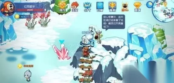 进到洞穴内一共有三座平台哦,放在指定位置就OK 总结:其实打法还是比较简单的,只要大家定点刷新水晶,过程中用到道具电锤等,只要收集5个冰灯就可以了!