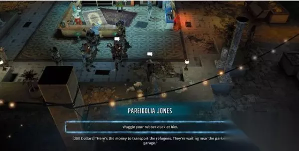 找到比扎尔内部的Pareidolia Jones,他位于中心交易区域。 然后让他帮忙运送难民。 1. 你可以通过付费300金,让他完成这项工作。 2. 或者在比扎尔外部区域的一片雪地上,你可以收集到一件“橡胶黄鸭(Rubber Duck)玩具”,他会把费用给你减少到100金。 3. 通过一个7级的Kiss Ass桥段,巴结他免费帮你办事。