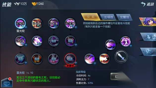 在地上布置出一个雷电法阵,碰到敌人后会爆炸。 上面这些就是仙法前期可以使用的技能了。 出场技是不能变换的,其他的技能是可以选择的。在前期有5个技能选4个。 其中每个技能都是非常不错的,技能的选择则是由自己搭配了。
