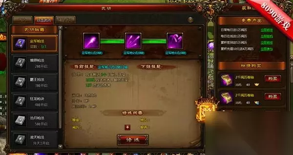 修炼神功的第二步就不能仅仅局限于气功了,攻击武功与辅助武功统统不可偏废!攻击武功可以帮助自己击杀更多敌人,而辅助武功,嘿嘿嘿,没准儿能助自己抢夺到更多的掉落喔!其中的被动技能护体神功的主要用途就体现在PK之上,练好护体神功,遇到强敌也无所畏惧咯!