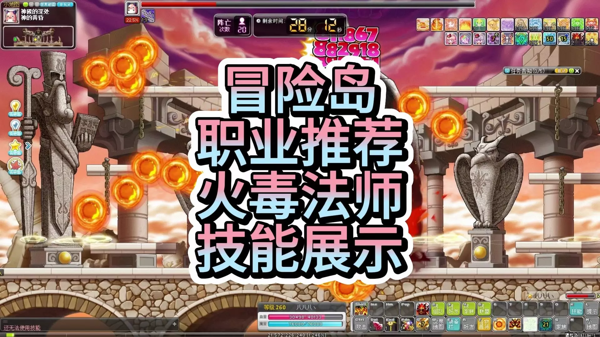 这是冒险岛同步服的攻略内容,带来箭神技改后的技能展示讲解,呈现了穿透箭、迅捷闪电、冰凤凰等技能效果,还包含该职业的快速升级方法等相关攻略。
