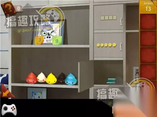 查看柜子里的五个娃娃,记住表情顺序。