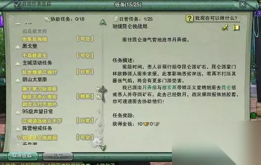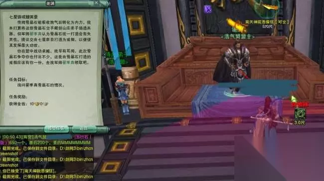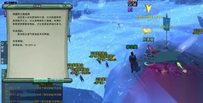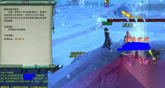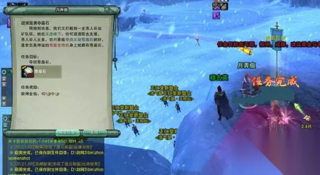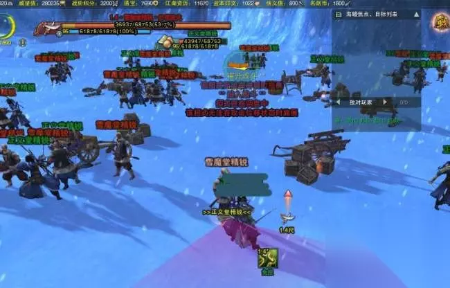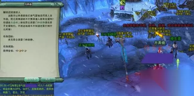 到了任务点,有很多正义堂精锐和雪魔堂精锐正在对肛,过去帮忙挑着打雪魔堂精锐,有概率掉落晶矿。这里小编友情提醒各位不要用群攻,群攻了周围的会全部围过来_(:зゝ∠)_而且最好是挑正义堂精锐T住的、血线在50%以下的打,很多都已经残血了,任务会做得比较快。